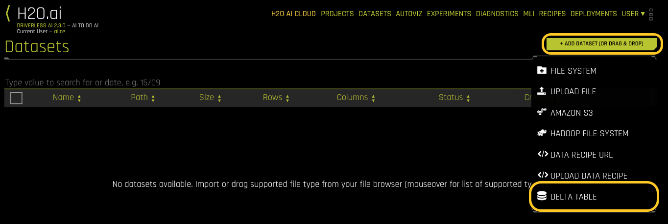 Use the Driverless AI Delta Table connector to explore data stored in Delta Lake. This page shows how to configure the connector and run queries.