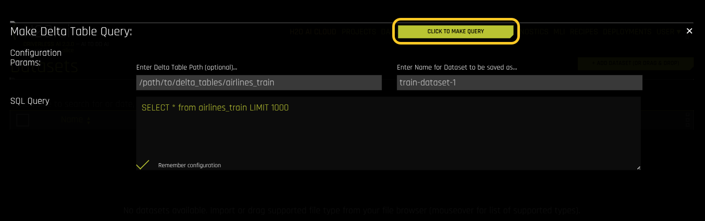 The Delta Table connector makes Driverless AI the SQL query execution engine. When querying large Delta Tables, allocate sufficient memory to avoid out-of-memory (OOM) errors.