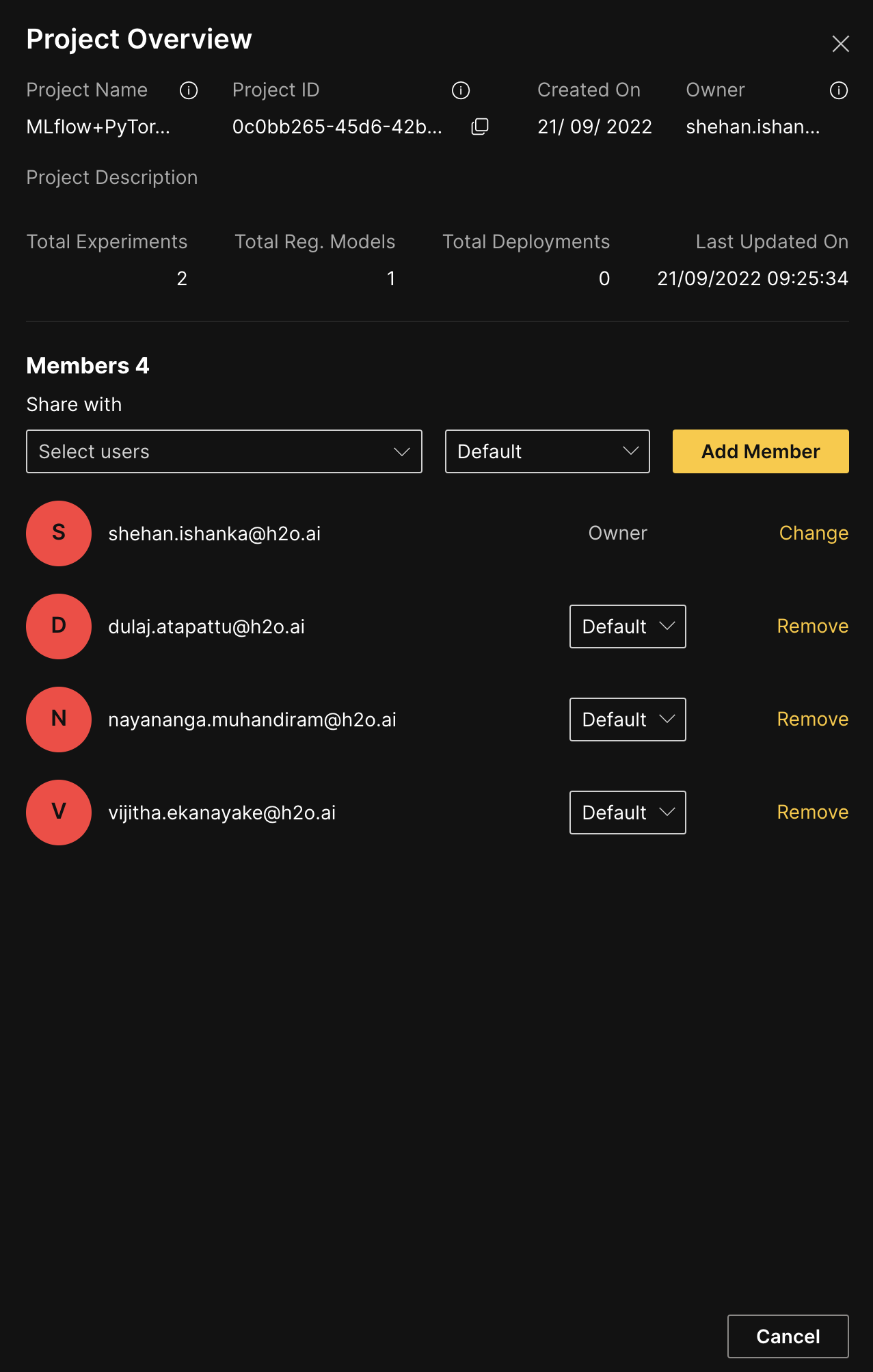 - Click Change next to the current owner in the Members section of the Project Overview panel. This opens up the Change Owner dialog box.