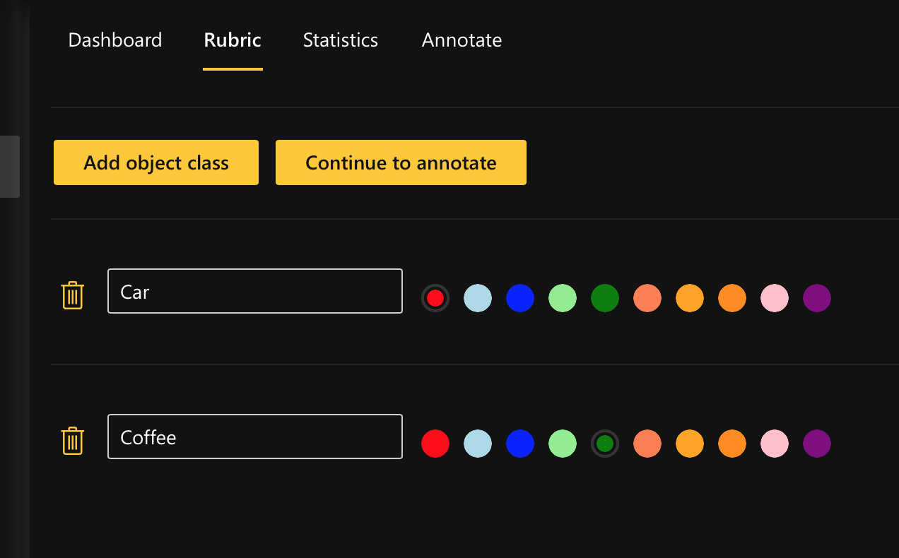 At any point during the annotation process, you can edit the rubric of the annotation task (e.g., add one more object class for an object detection annotation task). To learn how to edit the annotation task rubric, see Edit an annotation task rubric.